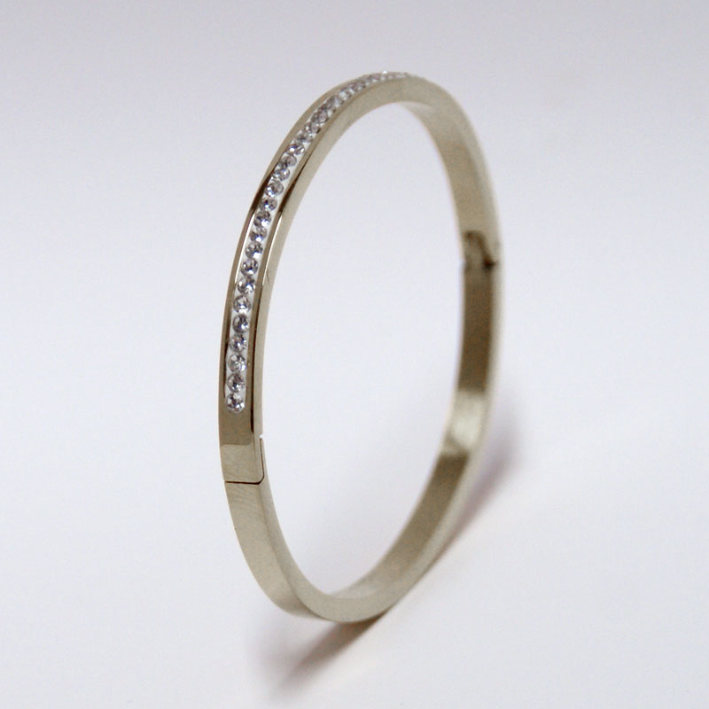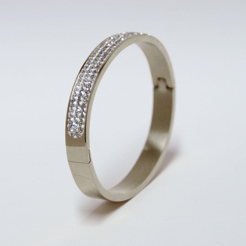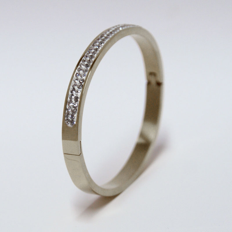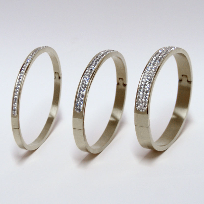 Damen Armreif Edelstahl mit Zirkonia besetzt ca. 4, 6 oder 8 mm breit silberfarben